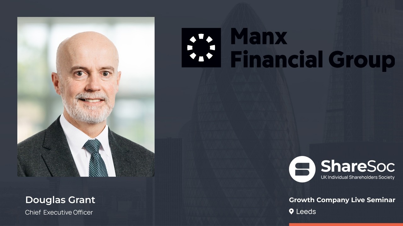 Manx Financial Group PLC (MFX) Manx Financial Group PLC (MFX) is an AIM-listed financial services Group headquartered in the Isle of Man, operating a diversified portfolio across the Isle of Man and the UK. Its strategy is centred on sustainable growth through a balance of organic expansion and strategic acquisition. The Group’s flagship subsidiary, Conister Bank Limited, founded in 1935, has expanded into the UK via a deposit-taking licence, strengthening geographic reach. Manx Ventures Limited (MVL) is the Group’s dedicated investment vehicle, identifying and scaling high-growth, synergistic businesses across lending, consumer finance and specialist financial services. A recent example is the acquisition of Payment Assist Limited, expected to deliver long-term efficiencies and growth. The wider Group includes Edgewater Associates, MFX Limited, and several SME, asset finance, collections and wealth businesses. Presenter Douglas Grant- Chief Executive Officer Douglas Grant is the CEO of Manx Financial Group. Douglas has over 40 years’ experience working in finance, initially with Scottish Power, before moving to the industrial sector to work with ICI and then Allenwest. Prior to joining Manx Financial Group, he was finance director of various UK and Isle of Man private sector companies and has extensive capital markets experience. He is a professionally qualified banker with an executive MBA.