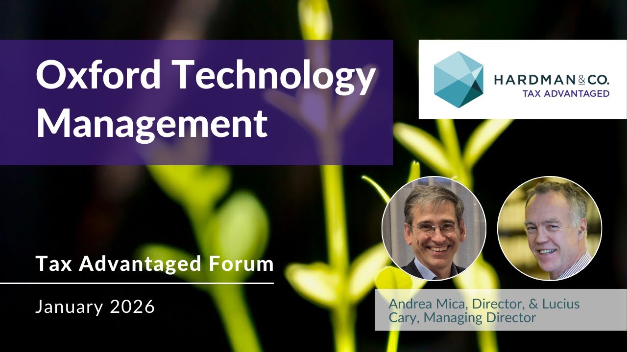 Join Andrea Mica, Director, and Lucius Cary, Managing Director, from Oxford Technology Management as they share insights from over four decades of backing early-stage science and technology companies. They explain how Oxford Technology Management's highly selective SEIS and EIS strategies have helped identify transformational ideas at the very start of their journey. Drawing on real-world examples from life-saving medical devices and breakthrough drug development to AI-driven diagnostics and next-generation battery technology, the session brings to life how patient capital, rigorous selection and transparency can deliver long-term returns. With a strong track record, clear fund structures and a discussion of both risks and rewards, we discover how cutting-edge innovation is turned into successful investments. Oxford Technology Management was speaking at Hardman & Co's Tax Advantaged Forum, hosted in association with GrowthInvest. We also heard from Blackfinch Ventures, Haatch and OnePlanetCapital. Read more on our website and check out our fund reviews here: https://hardmanandco.com/research/tax-advantaged-research/ Important notice: This content has been prepared purely for information purposes, and should not be construed as an offer, or the solicitation of an offer, to buy or sell any security, product, service or investment. Nor should it be viewed as a substitute for viewers’ own due diligence. The companies or legal entities covered in this content may or may not pay us a fixed fee for this content to be made available. This content contains factually correct information at the time of publication which has been provided to us by our client to which the content relates, who have also confirmed that it has not been misleadingly presented. Investing in early-stage growth companies is speculative and involves a high degree of risk. An investor could lose all or a substantial amount of his or her investment, and the securities, legal entities or alternative investments mentioned in this content may not be suitable or appropriate for all investors. Access to liquidity may be totally or highly restricted. Each investor’s particular needs, investment objectives and financial situation were not taken into account in the preparation of this content. Each investor must make his or her own independent decisions and obtain their own independent advice regarding any information, projects, securities, tax treatment or financial instruments mentioned herein. The fact that Hardman & Co has made available through this content various information constitutes neither a recommendation to enter into a particular transaction nor a representation that any financial instrument is suitable or appropriate for you. Each investor should consider whether an investment strategy of the purchase or sale of any product or security is appropriate for them in the light of their investment needs, objectives and financial circumstances. For more information, please read our full disclaimers: www.hardmanandco.com/research-disclosures www.hardmanandco.com/disclaimer